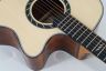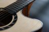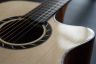 Верхняя дека гитары изготовлена из цельной ели, материал нижней деки и обечайки – махагони.