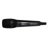 Ручной передатчик в металлическом корпусе представляет собой динамический микрофон с кардиоидной диаграммой направленности. Благодаря такой конструкции он практически не подвержен восприятию посторонних шумов и не чувствителен к возникновению обратной связи. На корпусе имеется ЖК-дисплей, на котором отображается уровень заряда батареи и настроенная частота, а так же ИК-порт для связи с приемником. Питание микрофона осуществляется двумя батареями типа АА, а время его непрерывной работы до 8 часов.