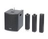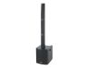 За плотный и сочный низ, начиная от 40 Гц, отвечает 12" сабвуфер со встроенным усилителем и 3-канальным микшером с возможностью беспроводного Bluetooth подключения. Верхняя 3-х секционная колонна состоит из соединительной вставки, 2-х сателлитов по 4 динамика 3,5" и 1" ВЧ драйвер. Колонна легко быстро и надежно устанавливается на сабвуфер без использования проводов, благодаря продуманной системе коннекторов. Система обеспечивает равномерное горизонтальное покрытие с изменяемым углом 120/200 градусов и звуковое давление в 125 дБ. Когда сателлиты находятся в центральном положении ("смотрят вперед"), угол покрытия составляет 120°, а при повороте каждого из них в противоположные стороны на 45°, угол составит 200°. При этом встроенный DSP процессор имеет переключатель, который обеспечит оптимальное звучание в зависимости от выбранного режима направленности.