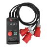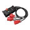 Ввод: фазоинверторную вилку CEE32A 5-pol и 1,5-метровый резиновый кабель H07RN-F 5G2,5 – Вывод: 2 х кабельные розетки PCE CEE16A 4-pol и 1,5-метровый резиновый кабель H07RN-F 4G2,5