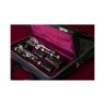 Роскошный дизайн кларнета дополнен инкрустированным серебряным фирменным знаком.